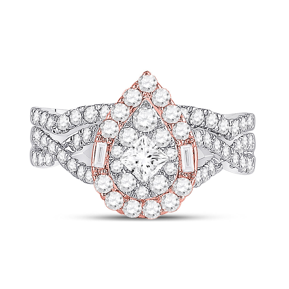 14kt Two-tone Gold Womens Princess Diamond Bridal Wedding Engagement Ring Band Set 1-1/2 Cttw (Certified) $1,987.90