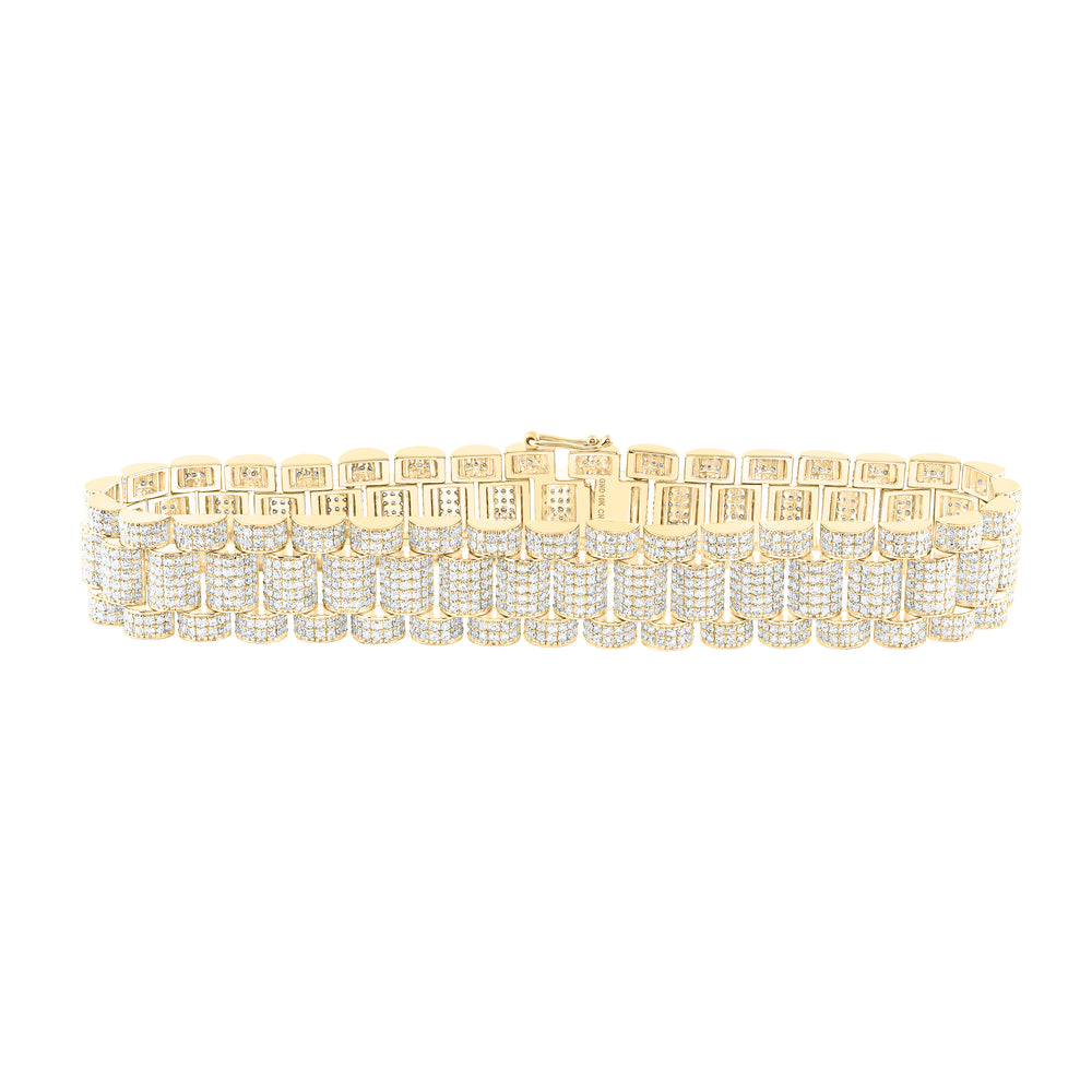 10kt Yellow Gold Mens Round Yellow Color Enhanced Diamond Link Bracelet 2-3/8 Cttw