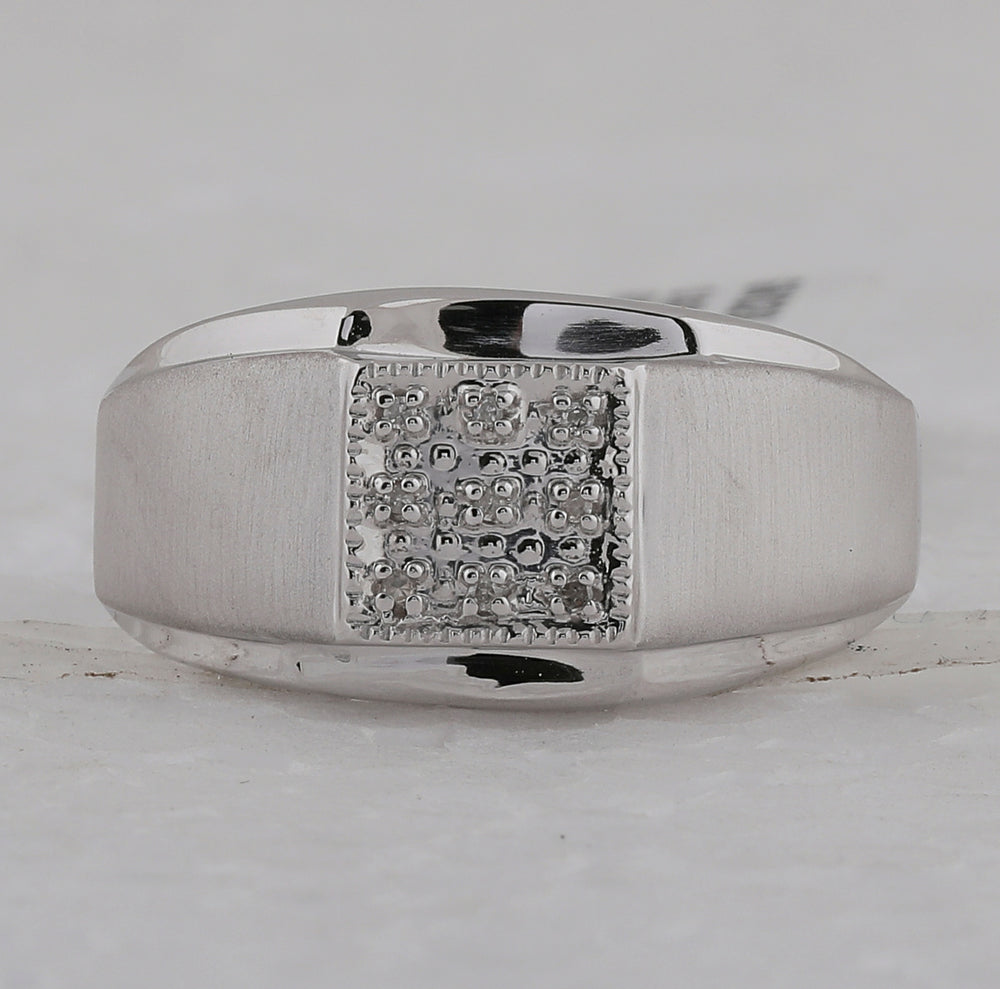 Sterling Silver Mens Round Diamond Rectangle Cluster Band Ring 1/6 Cttw