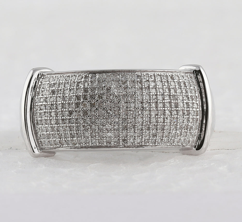 Sterling Silver Mens Round Diamond Rectangle Cluster Ring 5/8 Cttw